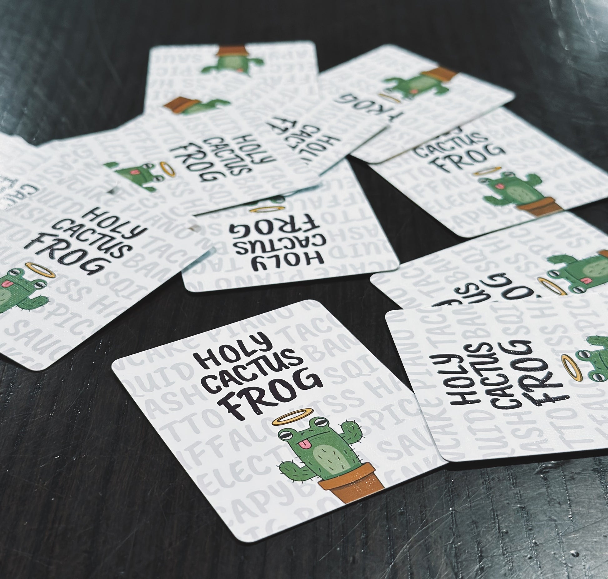 Holy Cactus Frog is a fast-paced and hilarious card game of crazy categories. In this chaotic, no-turns showdown, players race to find common threads between the words on their cards to create wild and wacky categories. Perfect for parties, family game nights, or anytime you want to let your imagination run wild. The weirder the better!