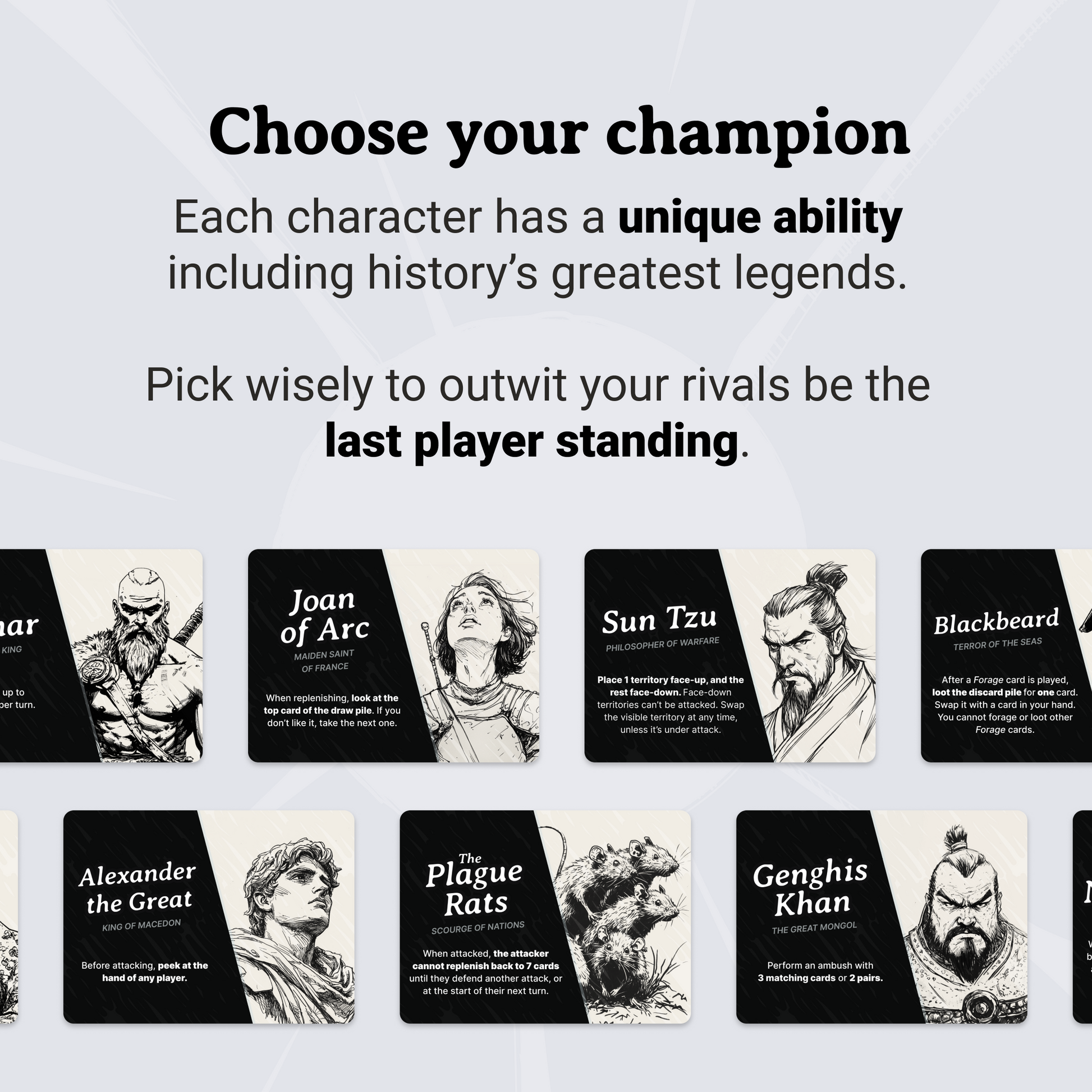 Kingdoms is a fast-paced card game that brings historical heroes to life in a thrilling battle of strategy, tactics, and survival. Perfect for game nights, Kingdoms combines the excitement of conquest with easy-to-learn rules, making it ideal for families, friends, and competitive players alike!
